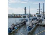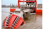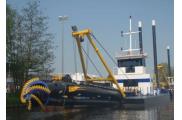 This is a kind of non-self propelled, hydraulic cutter suction dredger, with dismantle type of pontoons and can be assembly at the work place. Equipment on the dredger are as bellows: traversing device, cutter ladder lifting device, trolley device, hydraulic device for spuds lifting and down, and deck crane. The working process is as following: the cutter head cut the sand and mud underwater for mixture of slurry, then through the dredging pump, then by pipeline to send slurry to the work place.